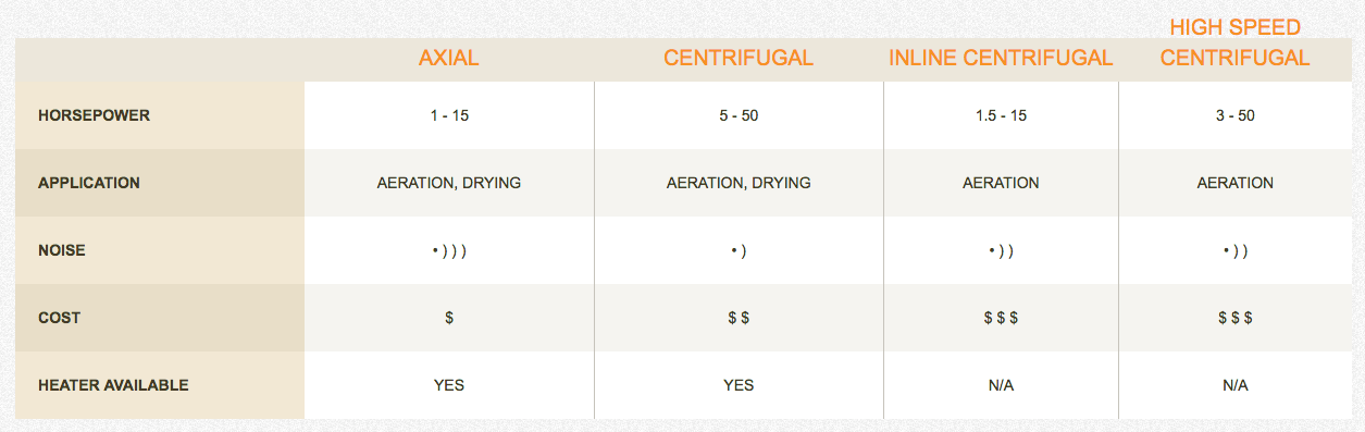 Keeping your grain in condition throughout its time spent in storage is the most vital aspect to any storage system. GSI designs and manufactures complete line of rugged aeration and grain conditioning systems to help maintain grain quality. Choose from a variety of high efficiency vane axial, centrifugal, and inline centrifugal fans and heaters, all with features designed to reduce costs and boost performance.